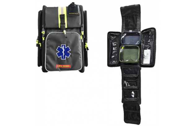 ● 전체 외부 수납공간은 원형 야간 반사 파이프가 부착되어 있고, 가방 상단과 측면부에 야간 반사띠와 야광띠가 있다.