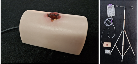 - 실제 피부와 유사한 고품질의 실리콘 재질로 제작되어, 유연성과 더불어 사람 피부와 같은 탄성을 가지며 패킹 훈련이 가능 - 총상 부위에 대한 정확한 진단과 처치 시나리오 구성에 활용 - 지혈, 상처 세척, 감염 관리, 등의 기본 응급처치 훈련 가능 - 실제 피부와 유사한 질감과 반발력 제공 - 총상 모형 바닥이 얇아 반복 실습 시 구멍이 유사 제품들의 단점을 완벽하게 보완 - 내장되어 있는 혈액 튜브에 혈액 주입기를 연결하면 출혈 훈련이 가능하며, 폴대와 혈액백을 활용하여 혈액의 양을 조절하며 사용이 가능 - 사용자가 혈액 주입량을 조절할 수 있으며, 필요에 따라 실린지로 교체하여 혈액공급의 압력 조절 가능 - 총상 지혈 훈련 시 제품에 혈액공급과 패킹을 1인이 실습 가능 - 사용된 혈액은 보관케이스에 고여 재사용이 가능 - 혈액은 물로 쉽게 세척이 가능하여 관리에 용이하며, 반복적인 재사용이 가능 - 국산 제품으로 파손이 발생 할 경우 빠른 조치를 취할 수 있음 | |
