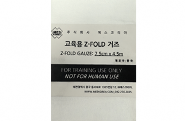 - 일반적인 출혈 관리 상황(열상, 베인 상처, 찰과상, 수술, 수술 후의 외과적 창상과 외상 등)을 실습/훈련할 때 사용이 가능한 Z-FOLD 형태의 거즈