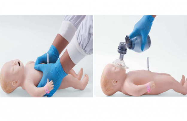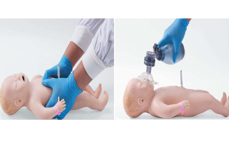 - 사실적인 모양과 촉감을 제공하는 매끄럽고 유연한 시뮬레이션 피부를 갖춘 완전한 골격을 갖추고 있다 - 현실적인 해부학적 구조에는 혀와 구개수가 있는 입, 그리고 배꼽 관리 훈련을 위한 눈에 보이는 잔여 배꼽줄이 포함된다 - 이 모델은 실제 신생아 상황을 시뮬레이션하기 위해 정확한 위치 지정과 목 움직임을 가능하게 한다 - 질식사한 신생아의 호흡 정지와 심박수 감소를 재현하여 효과적인 소생술 기술을 연습할 수 있도록 해준다 - 양압 환기, 기관 삽관, 흉부 압박과 같은 기능은 압박 깊이, 위치 및 빈도에 대한 실시간 피드백을 제공한다 - 소생술 이후 모델은 자발적인 호흡, 심박수 증가, 심지어 울음까지 보일 수 있어 훈련의 현실감이 더욱 커진다 | |